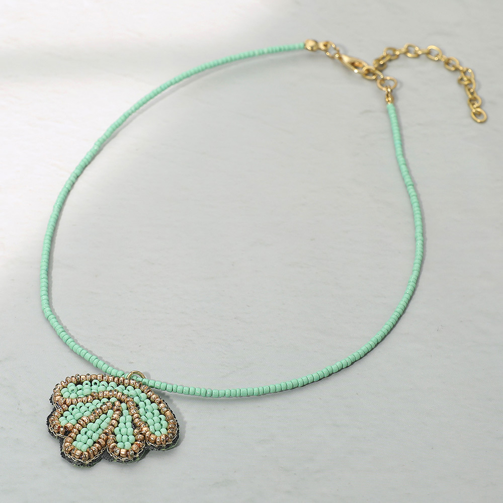 Details • Necklace Size : 14" + 3" L • Pendant Size : 1.3" X 1" • Elegant necklace featuring a handcrafted beaded leaf pendant on a fine beaded chain. Adds a touch of bohemian charm and natural elegance to casual or dressy looks. Lightweight and stylish, this piece is perfect for layering or wearing as a statement accent. • Lead and Nickel Compliant • Made In India