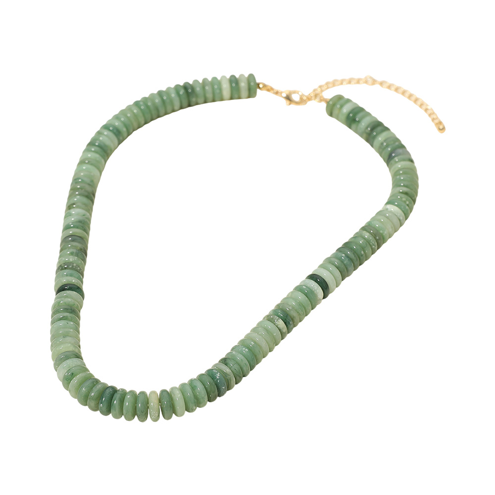 • This necklace features smooth, rounded disc beads with a subtly speckled finish for an earthy, organic aesthetic. Finished with an adjustable clasp for a perfect fit, it’s ideal for everyday wear or layering with other pieces for a curated, effortless look.