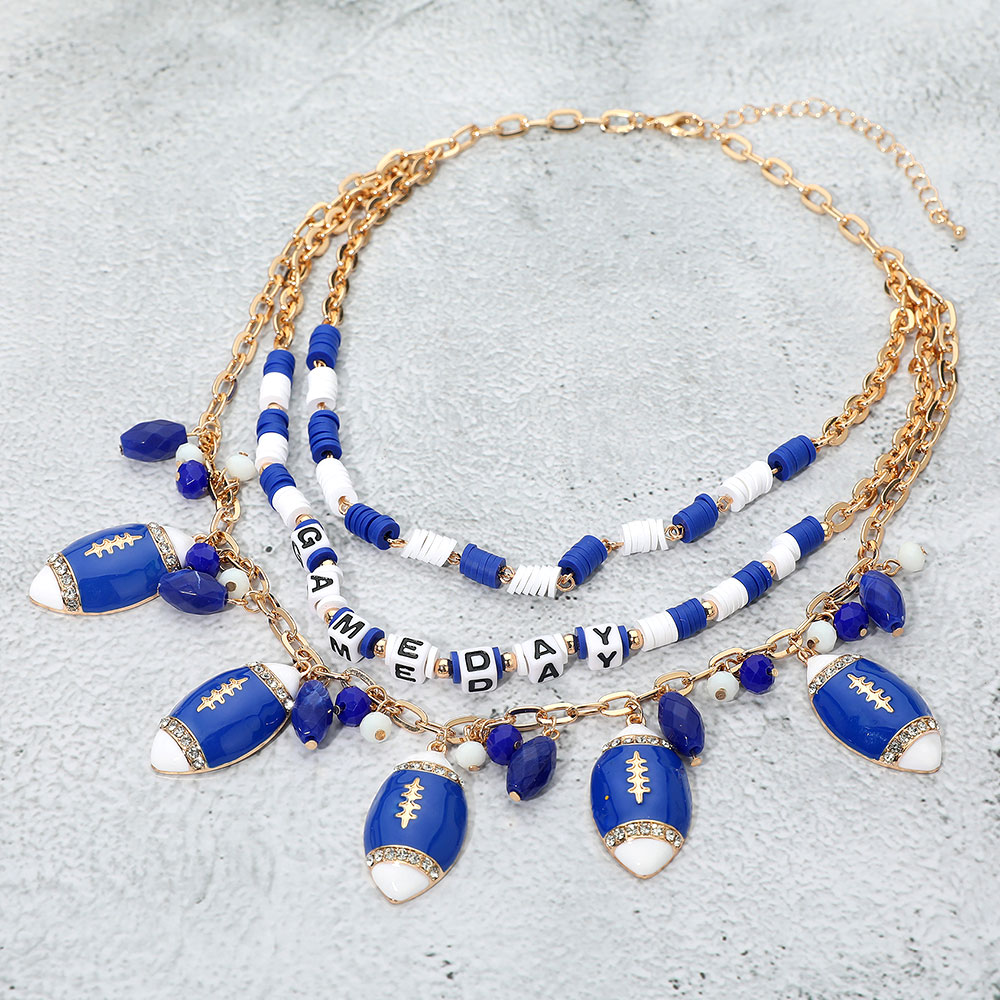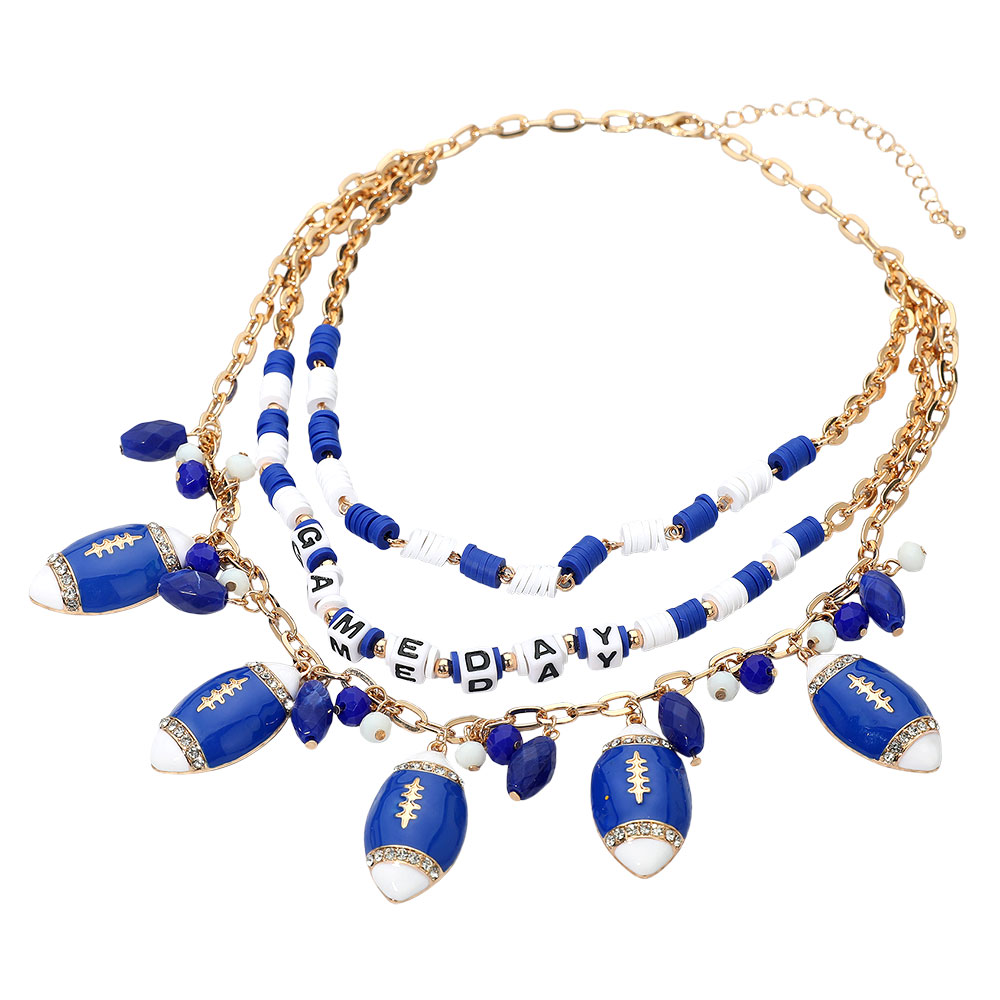 • Layered necklace featuring football charms, gameday letter beads, and playful accents. A spirited accessory to show team pride, add energy to gameday looks, and complete fan outfits with fun layered style.