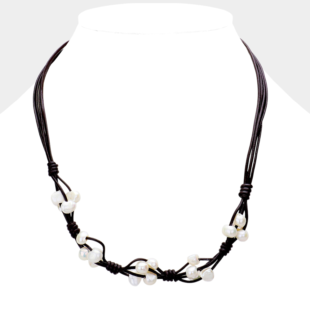 Stone Embellished Metal Flower Pearl Pendant Necklace