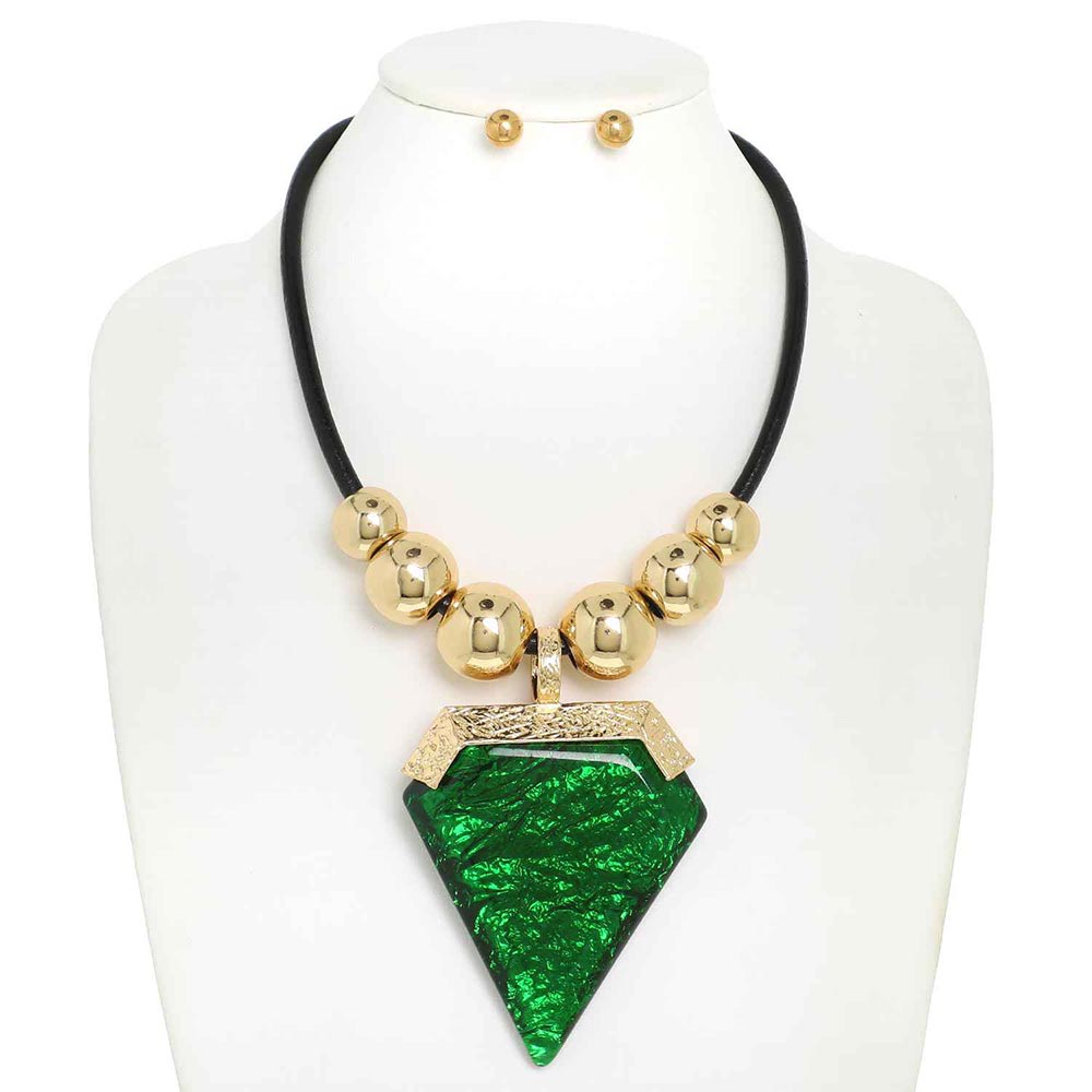 • Turn heads with the Geometric Statement Necklace Set, featuring a striking triangular pendant and polished gold accents. Paired with matching stud earrings, this bold design adds a touch of modern elegance, perfect for elevating evening wear or enhancing any standout look.