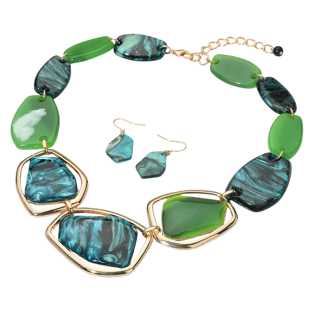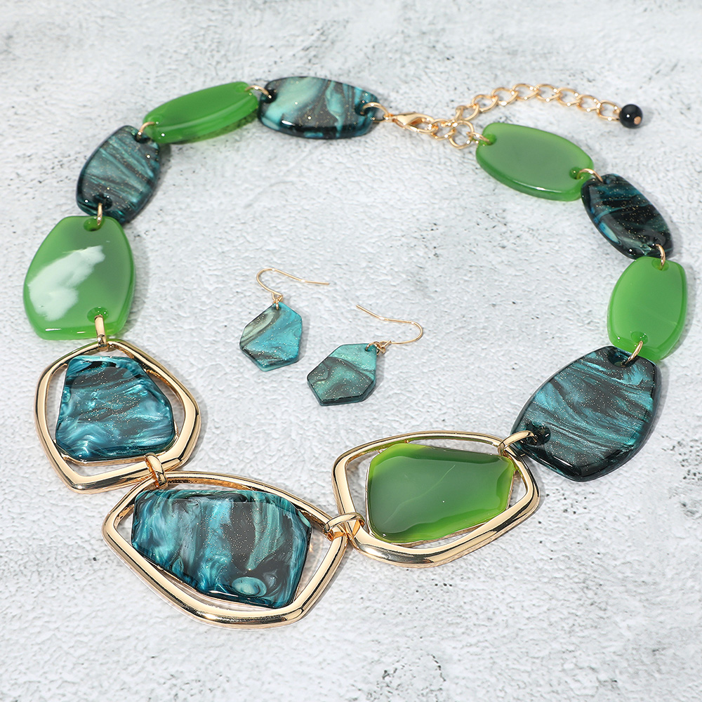 Geometric Chunky Sparkled Celluloid Acetate Plate Link Statement Necklace Geometric Chunky Sparkled Celluloid Acetate Plate Link Statement Necklace