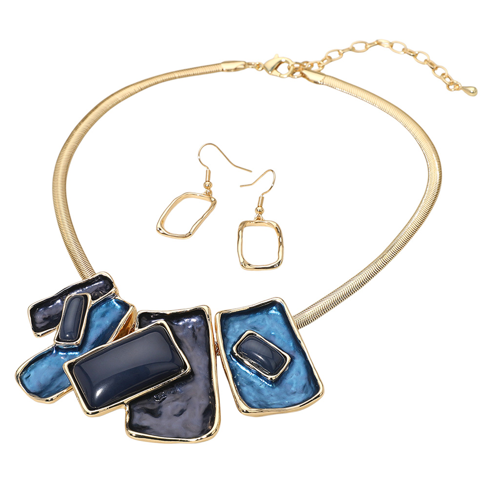 • Stylish jewelry set featuring a bold geometric necklace with matching earrings, designed in an artistic modern style. Perfect for parties, evening wear, or everyday elegance. This contemporary set adds sophistication and a fashion-forward edge to any outfit.