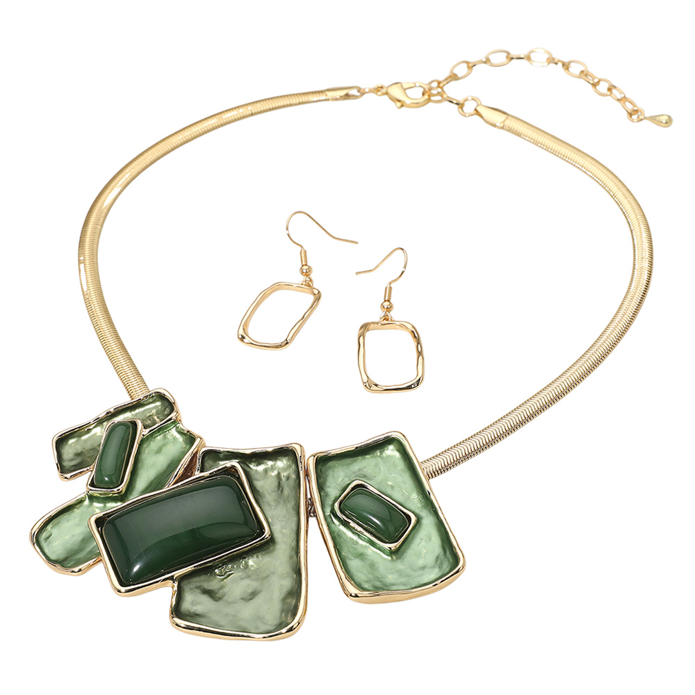 • Stylish jewelry set featuring a bold geometric necklace with matching earrings, designed in an artistic modern style. Perfect for parties, evening wear, or everyday elegance. This contemporary set adds sophistication and a fashion-forward edge to any outfit.