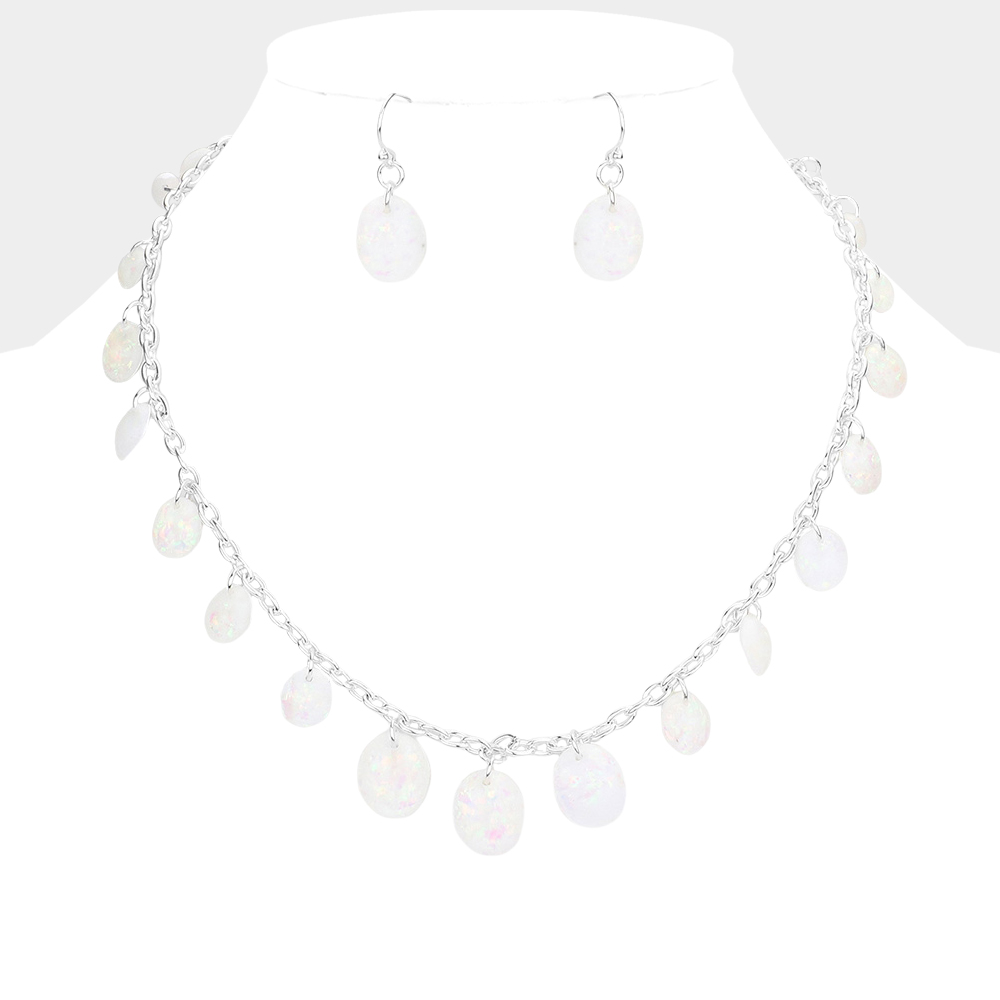 Glittered Oval Station Necklace