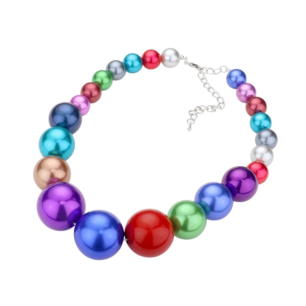 Chunky Marbled Beads Pearl Beaded Statement Necklace