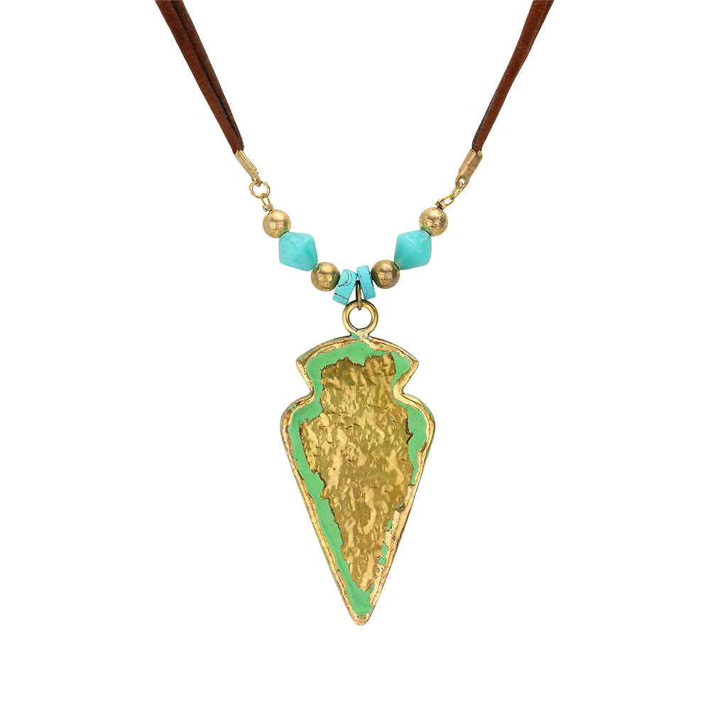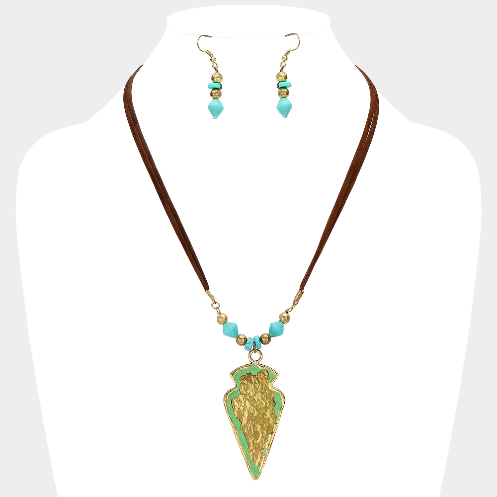 Hammered Metal Arrow Pendant Faceted Beads Long Necklace