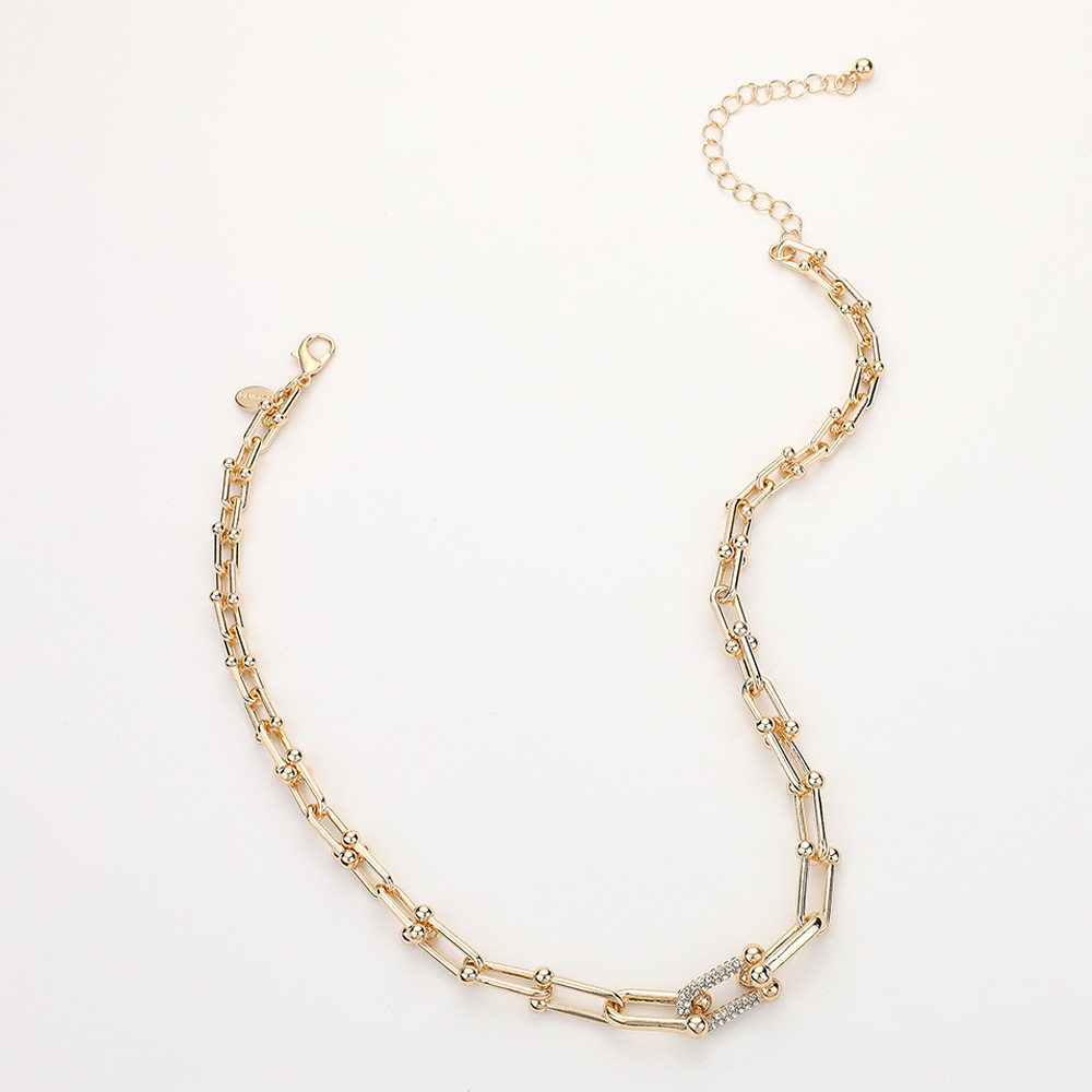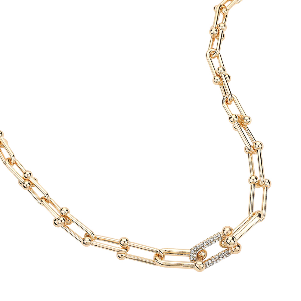 Hardware Link Stone Paved Necklace