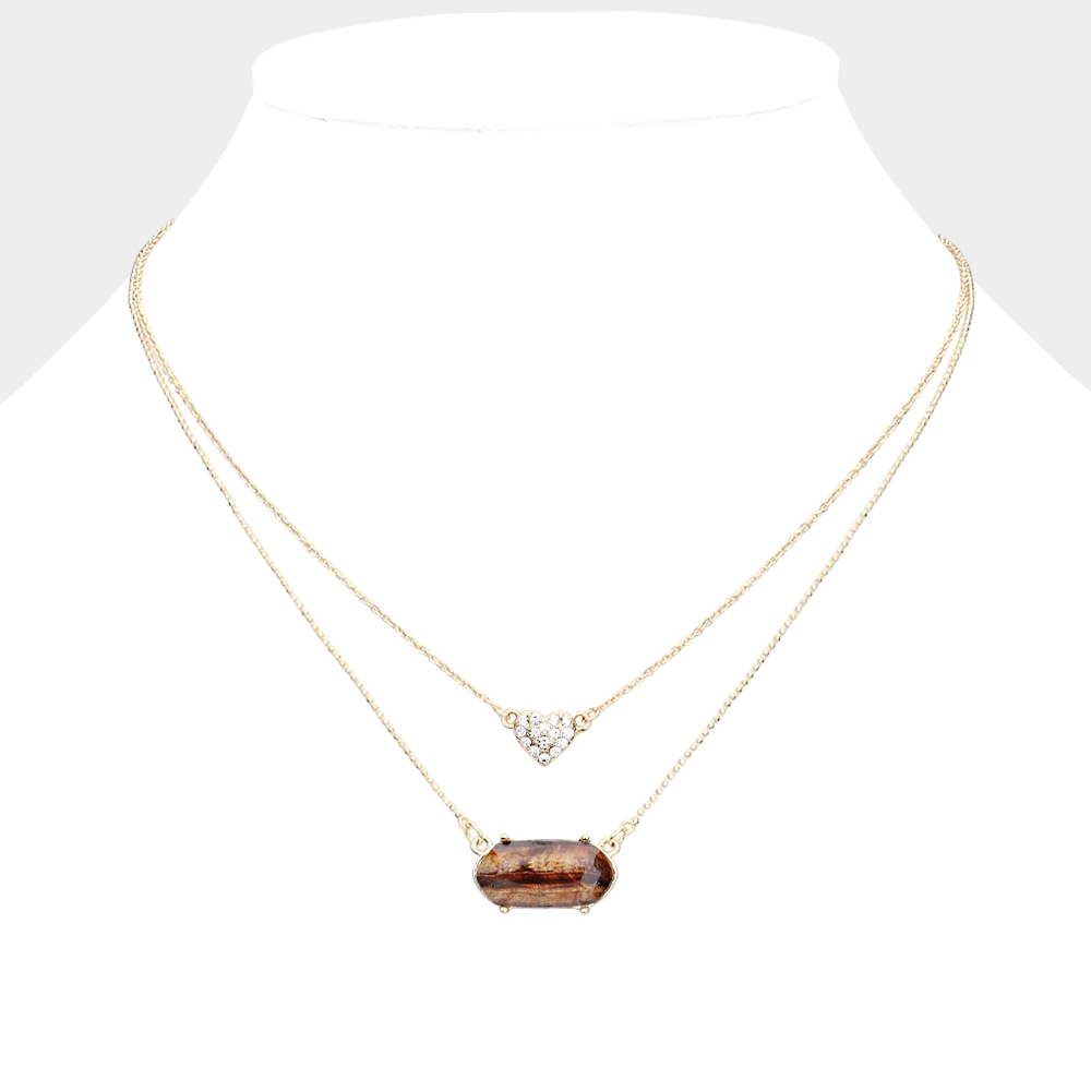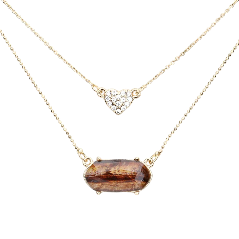 Heart Hexagon Bead Pendant Double Layered Necklace