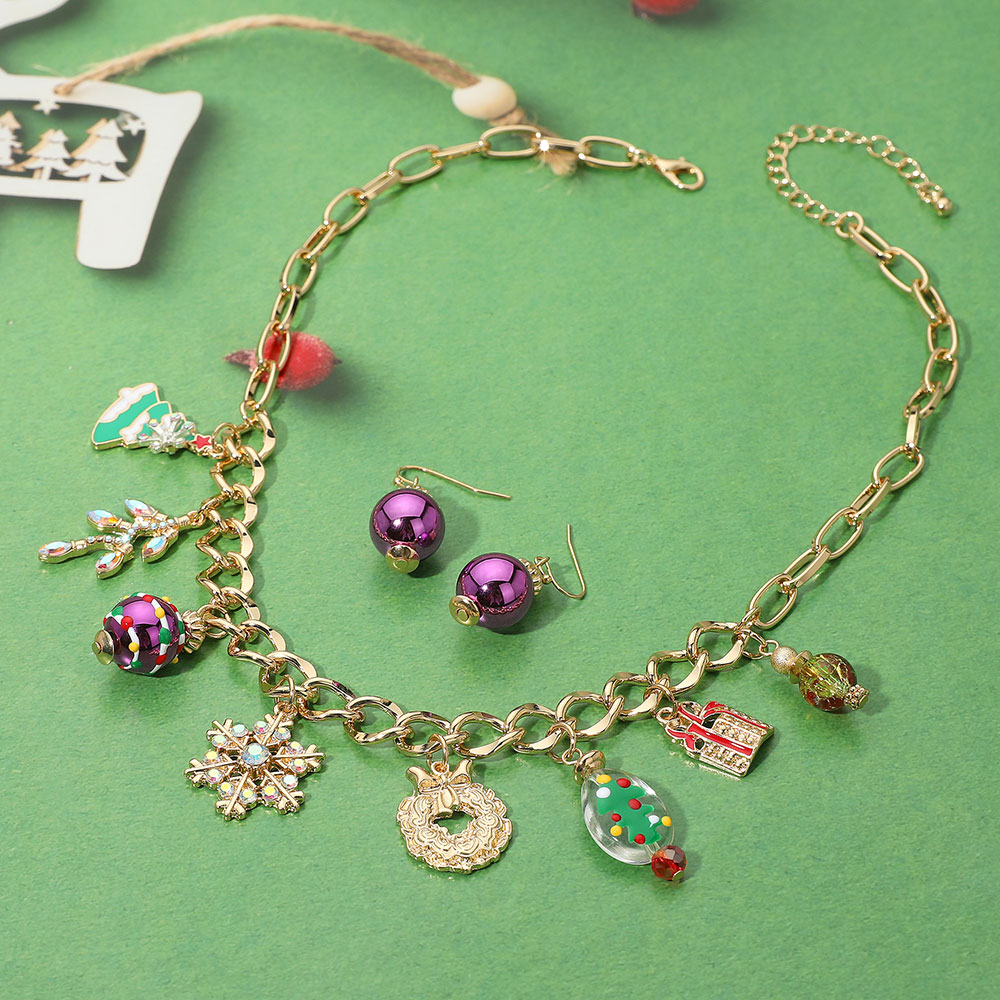 Details • Necklace Size : 18" + 3" L • Decor Size : 1.75" L • Earrings Size : 1.5" L • Holiday charm jewelry set featuring a playful necklace with seasonal pendants and matching drop earrings. A whimsical and sparkling accessory perfect for parties, gifting, and celebrating in festive style. • Lead and Nickel Compliant
