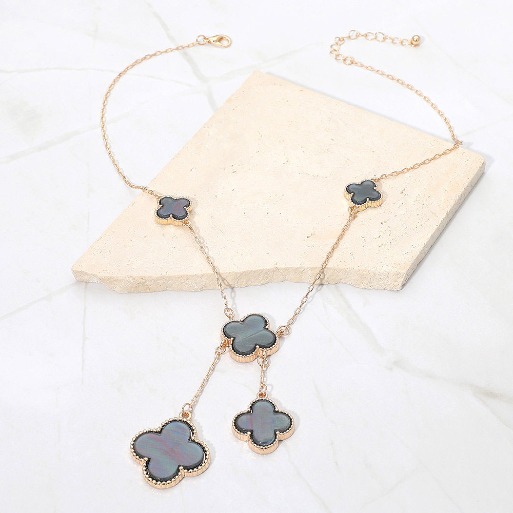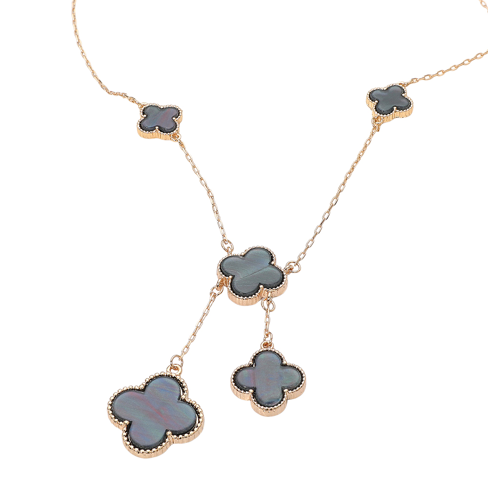 • Stylish necklace featuring multiple quatrefoil pendants in a cascading layered design. The elegant drop detail adds movement and sophistication, making it perfect for both casual and formal wear, offering a timeless charm that enhances any outfit effortlessly.