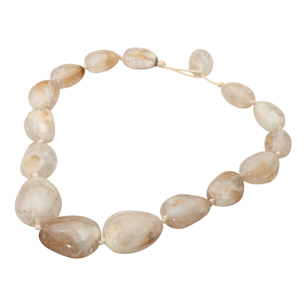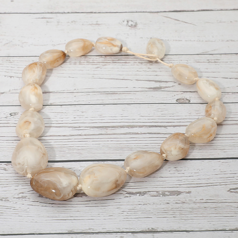 • Bold chunky beaded necklace featuring irregular resin beads in natural tones. A versatile statement piece perfect for elevating casual looks or adding flair to evening outfits.