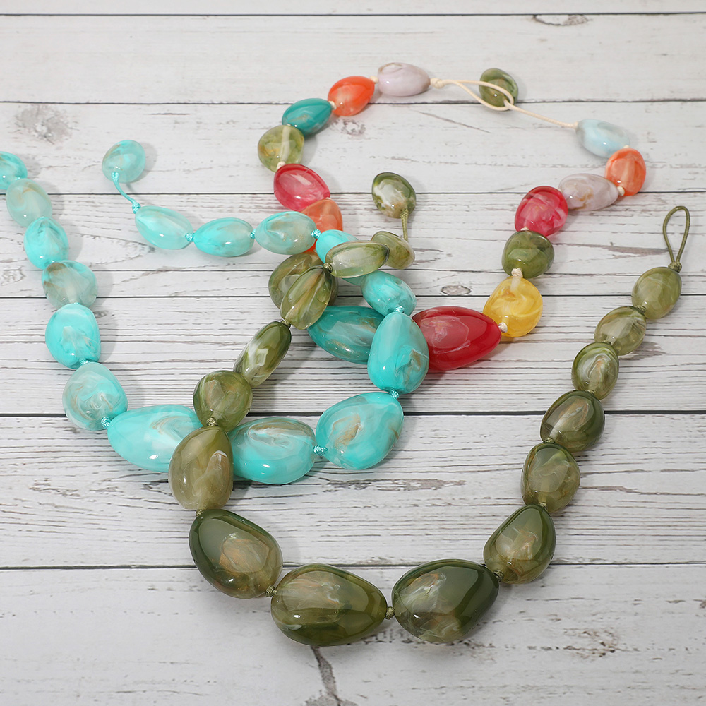 Marbled Chunky Pebble Beaded Statement Necklace