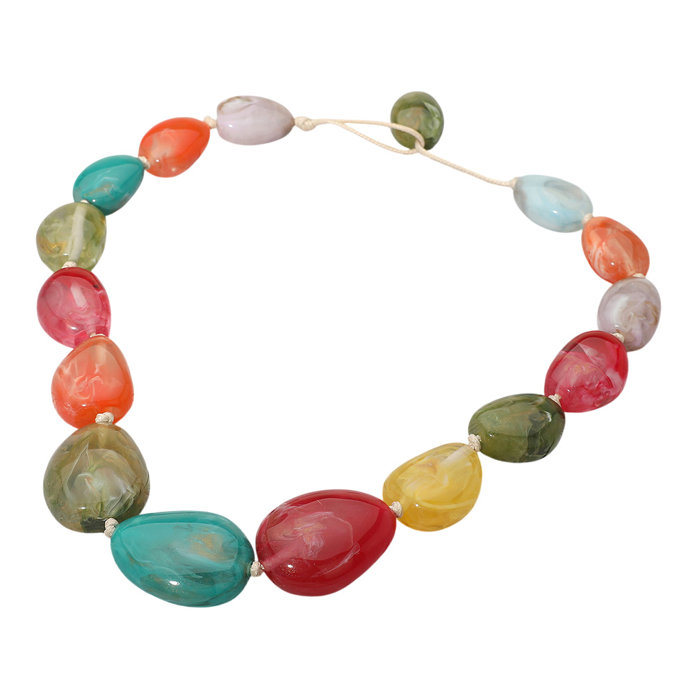 • Bold chunky beaded necklace featuring irregular resin beads in natural tones. A versatile statement piece perfect for elevating casual looks or adding flair to evening outfits.