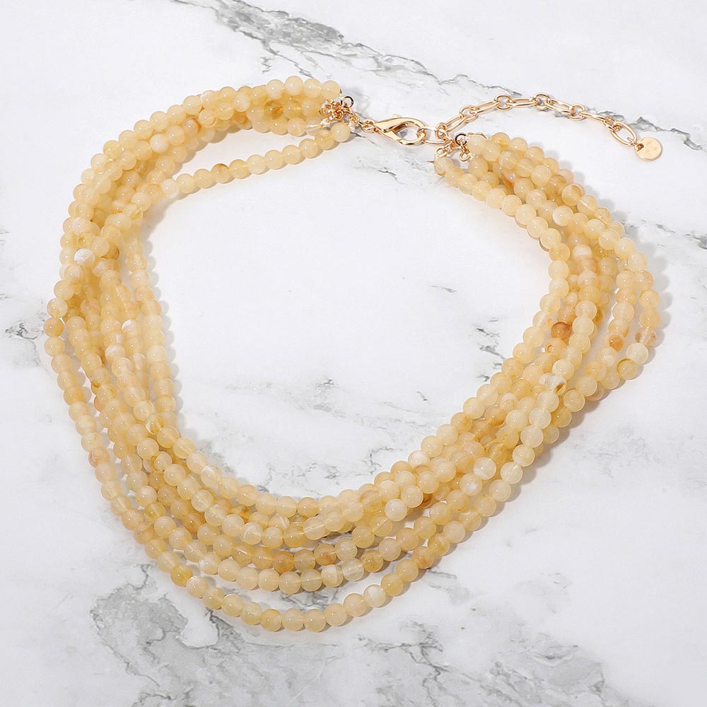 • Make a bold impression with this multi-strand beaded statement necklace designed to enhance any outfit. Its layered construction adds dimension and elegance, offering a polished look that transitions seamlessly from everyday wear to standout, special-occasion styling.