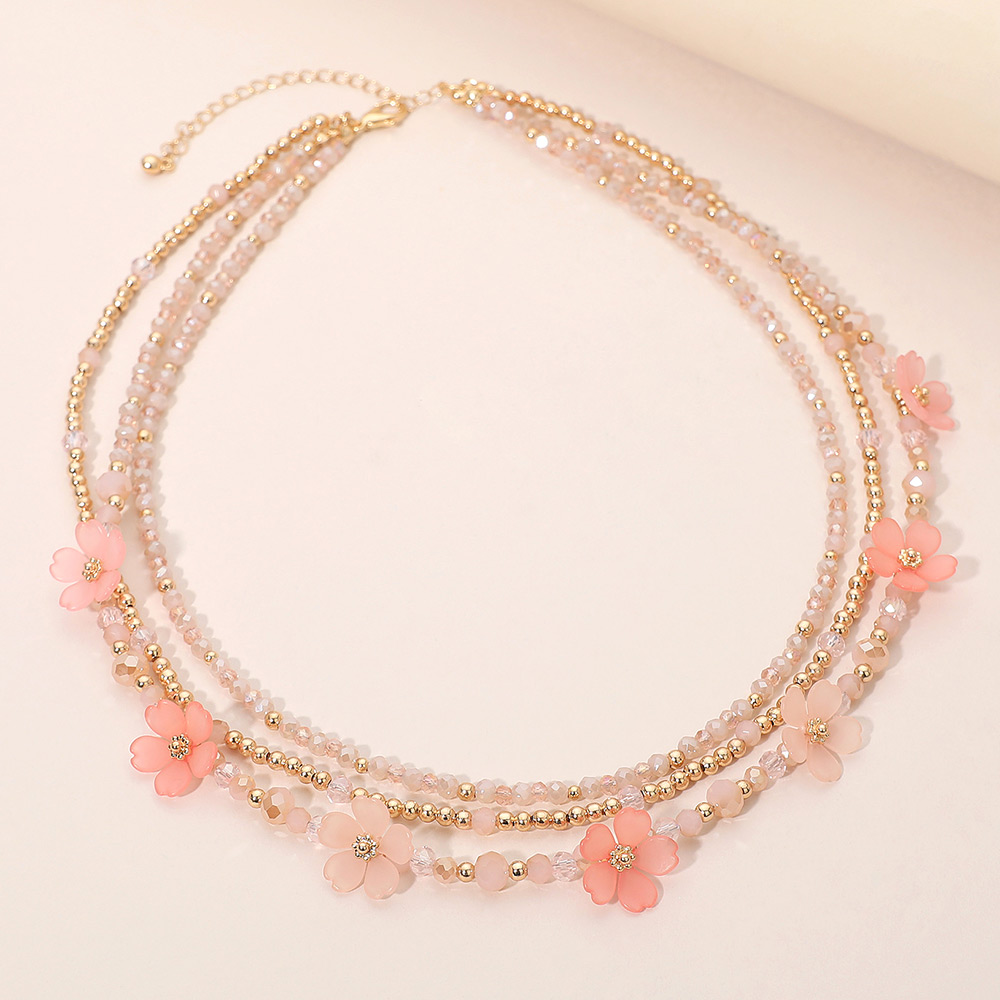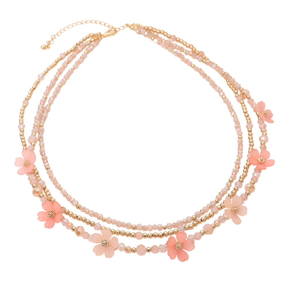 • Embrace elegance with this layered floral beaded necklace. Featuring delicate multi-strand design with shimmering beads and petite flower accents, it adds a playful yet refined touch to any ensemble—perfect for both casual charm and special occasions.