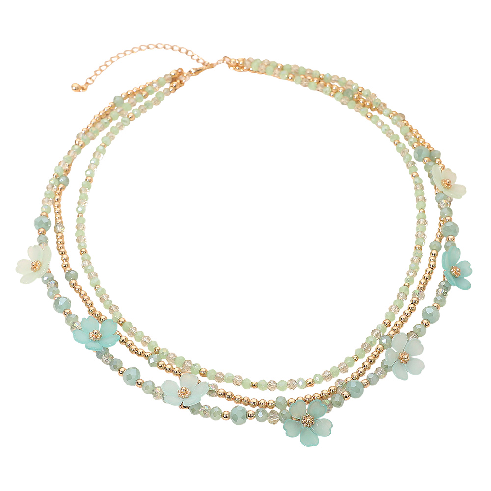 • Embrace elegance with this layered floral beaded necklace. Featuring delicate multi-strand design with shimmering beads and petite flower accents, it adds a playful yet refined touch to any ensemble—perfect for both casual charm and special occasions.