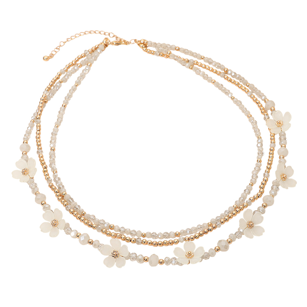 Details • Necklace Size : 15.5" + 3" L • Decor Size : 2" L • Embrace elegance with this layered floral beaded necklace. Featuring delicate multi-strand design with shimmering beads and petite flower accents, it adds a playful yet refined touch to any ensemble—perfect for both casual charm and special occasions. • Lead and Nickel Compliant