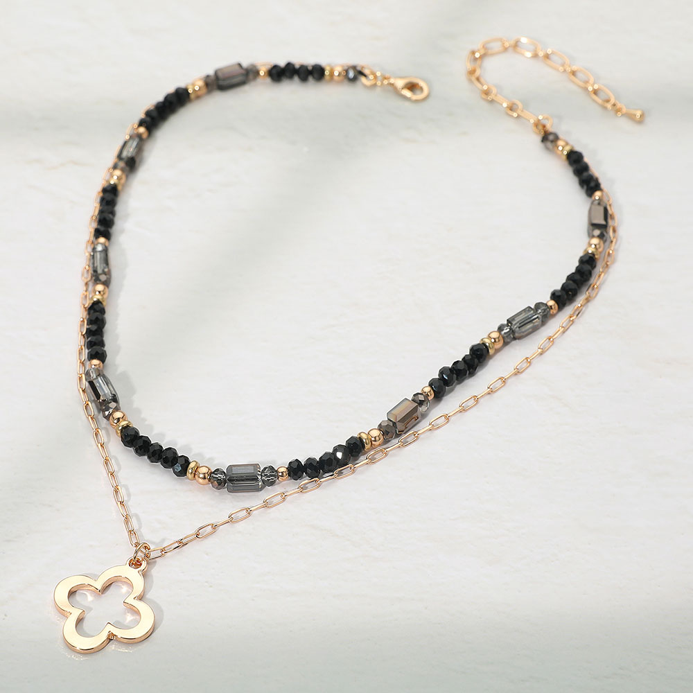 Metal Open Quatrefoil Pendant Faceted Beaded Layered Necklace