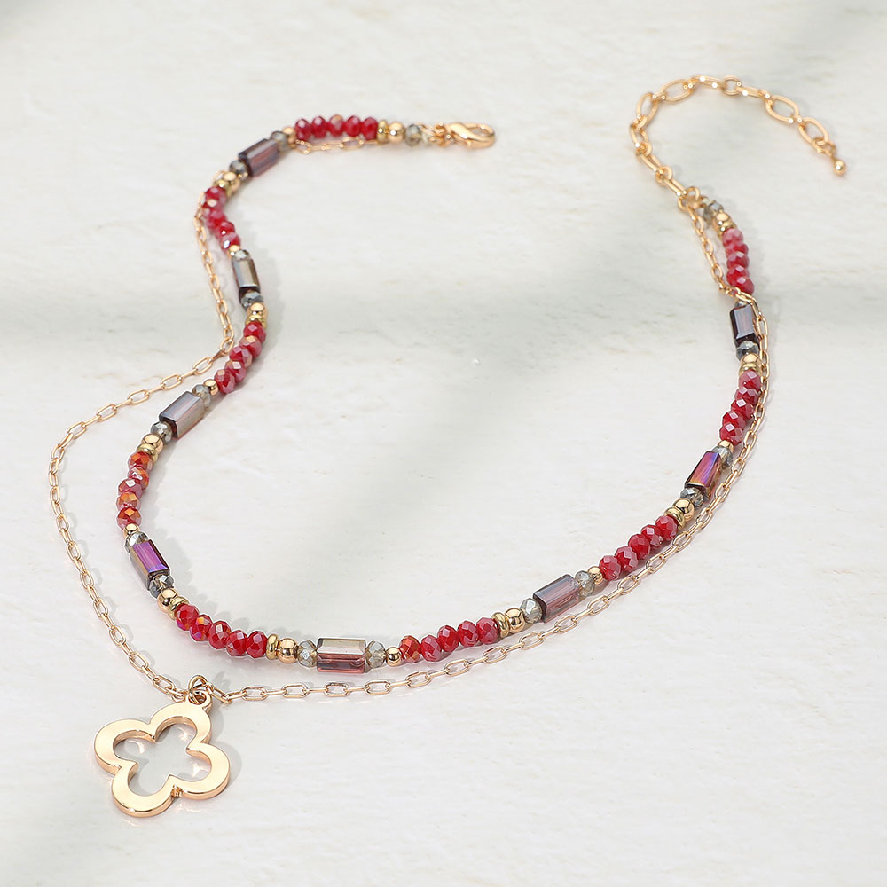 • Add a chic touch to any outfit with this layered necklace featuring delicate beads, a sleek chain, and a clover pendant. Perfect for effortless styling, this versatile piece pairs beautifully with both casual and dressy looks, making it a must-have accessory.