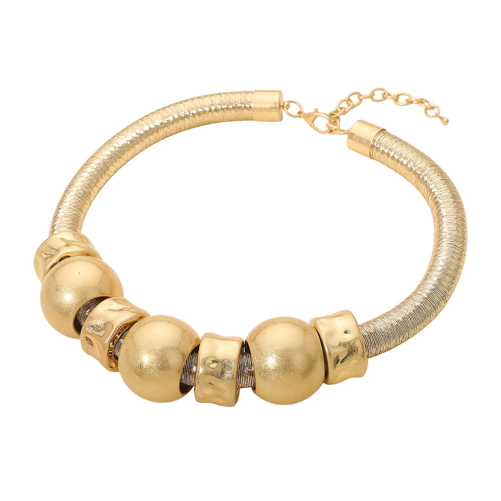 Details • Size : 19" + 3"L • Decor Size : 1.25" L • Elevate your look with the Bold Statement Beaded Necklace, featuring oversized metallic beads and a sleek, structured collar. Perfect for adding a touch of confidence and luxury, this striking piece complements both chic evening styles and sophisticated everyday outfits. • Lead and Nickel Compliant