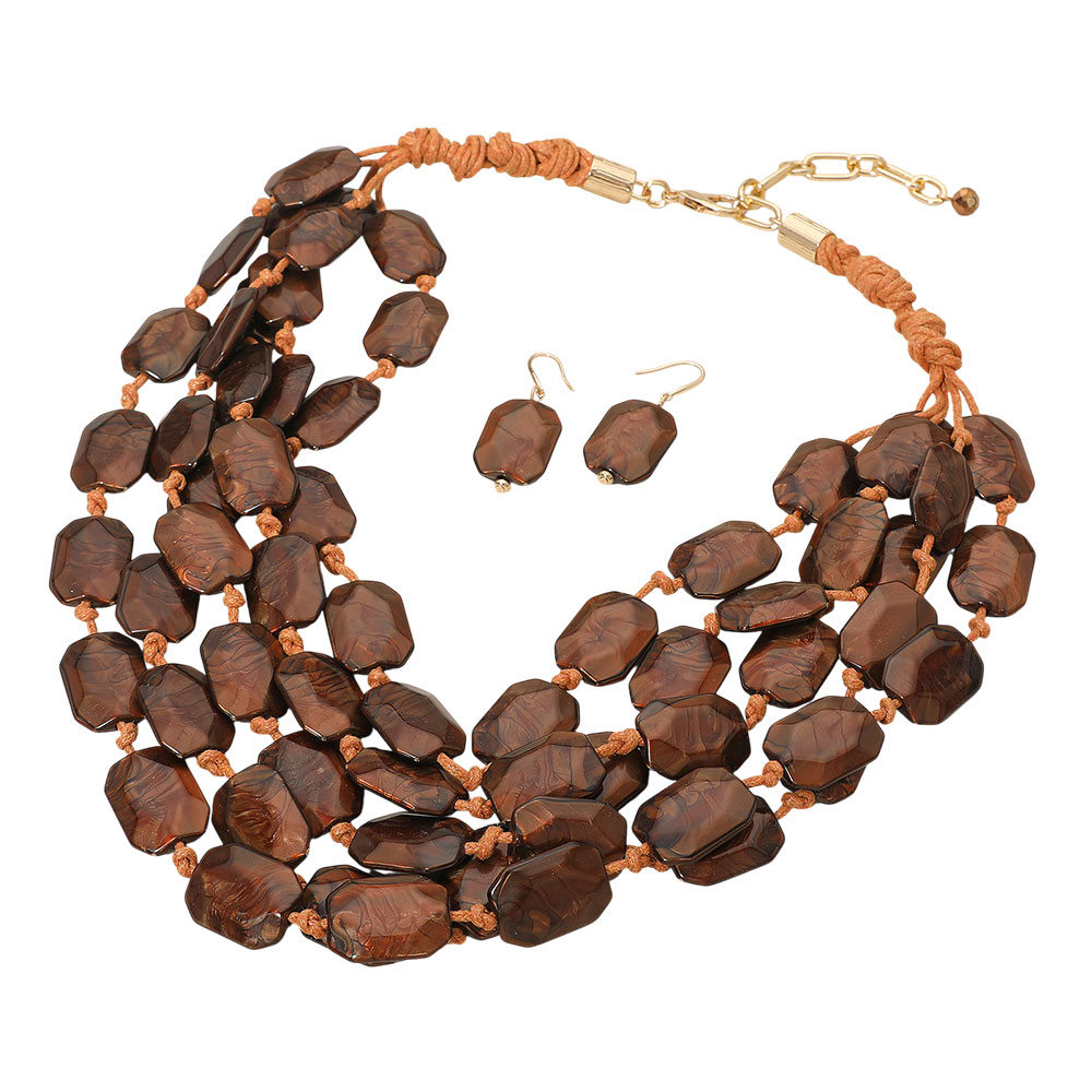 • Elevate your look with this layered bead necklace and matching drop earring set featuring faceted bead strands and adjustable tie-and-chain closure styling. Designed to wear as a coordinated set or mix separately, it adds bold texture to everyday outfits and dressed-up looks while offering a versatile, gift-ready accessory pairing.
