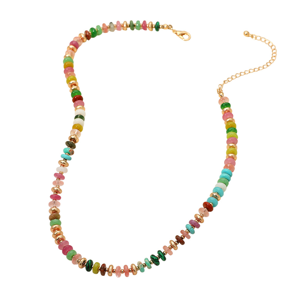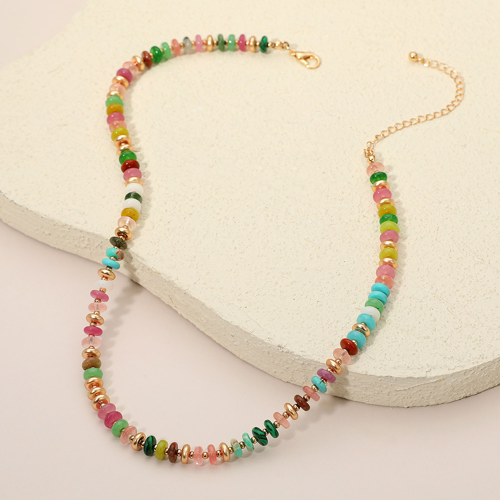 • Playful multi beaded necklace featuring colorful round beads arranged in a vibrant pattern. Lightweight with an adjustable chain for a perfect fit, this necklace adds a fun pop of style to casual and chic outfits. A versatile jewelry piece ideal for layering or wearing solo.