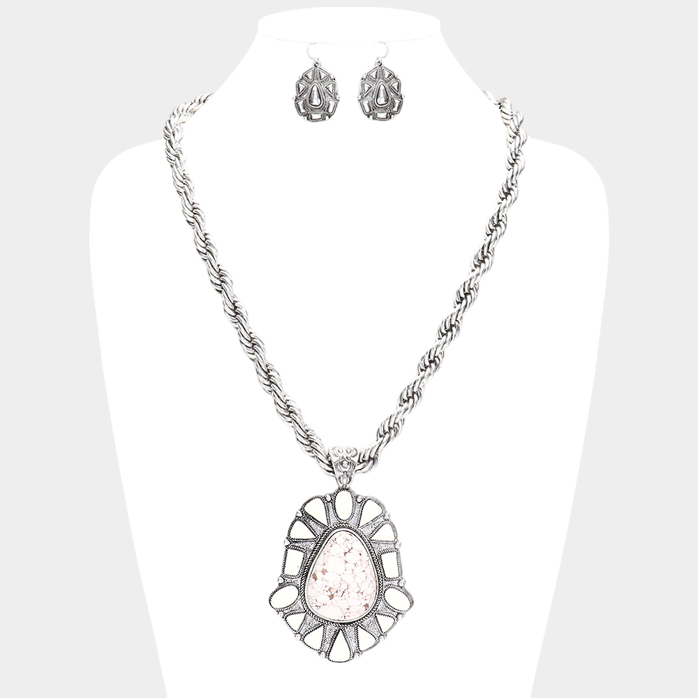 Natural Stone Rectangle Antique Metal Stud Earrings