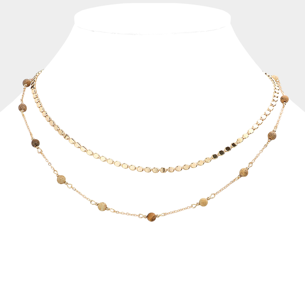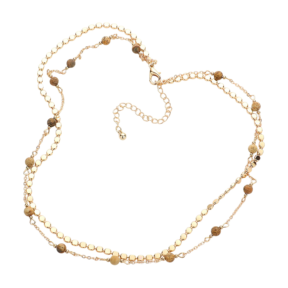 Oval Natural Stone Embossed Metal Pendant Necklace