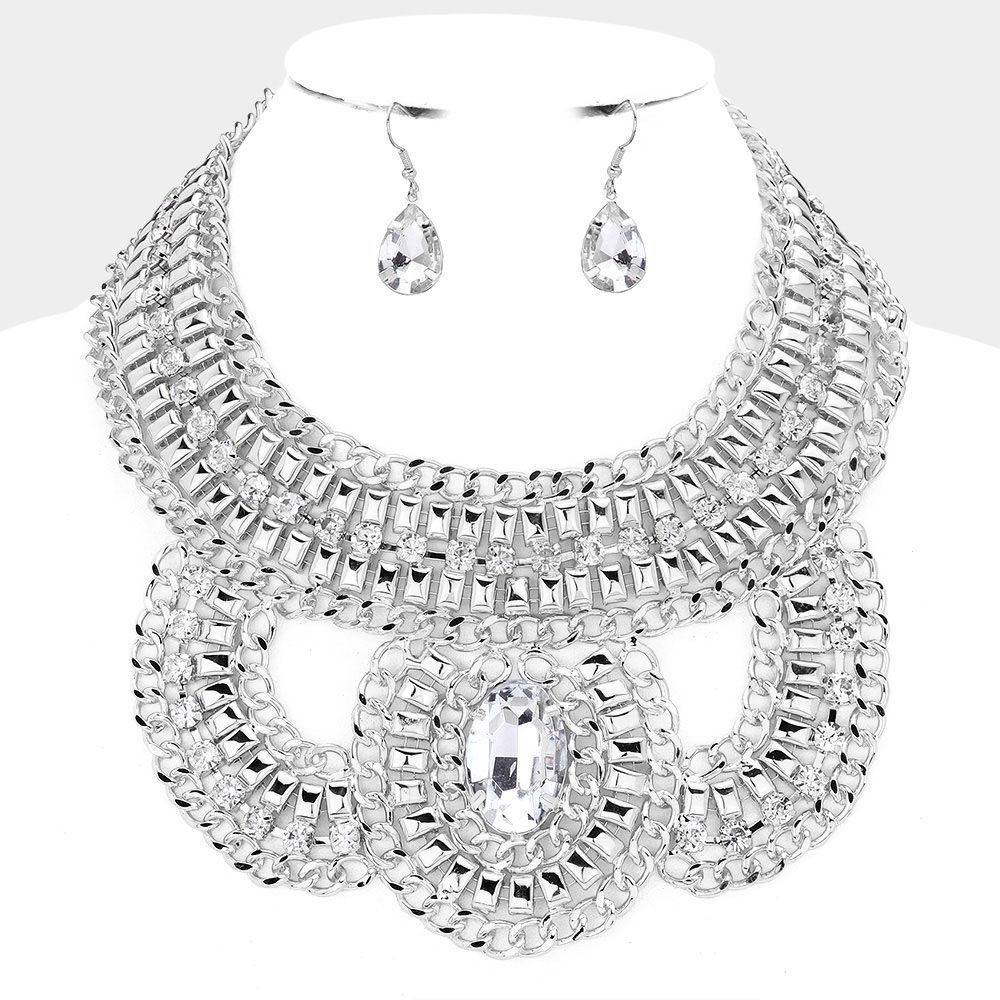 Oval Stone Accented Statement Necklace