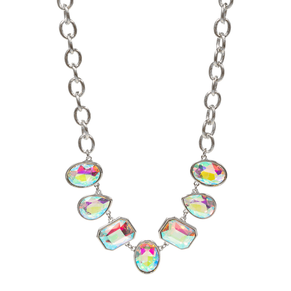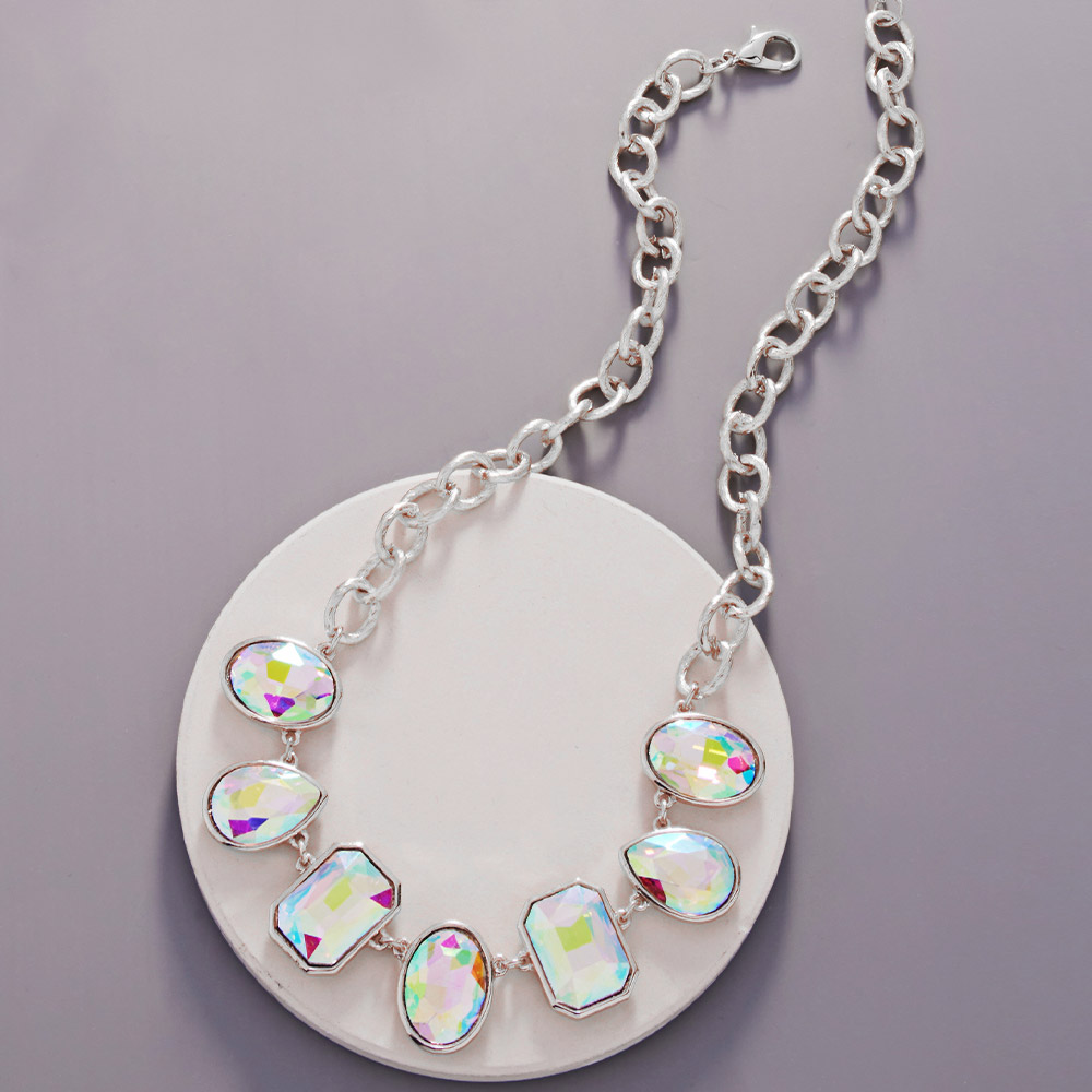 Oval Teardrop Square Crystal Stone Cluster Necklace