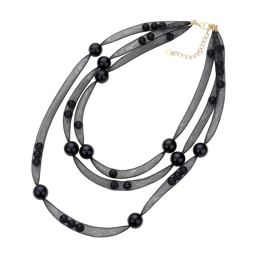Pearl Accented Triple Layered Mesh Bib Necklace