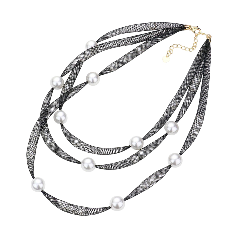 Pearl Accented Triple Layered Mesh Bib Necklace