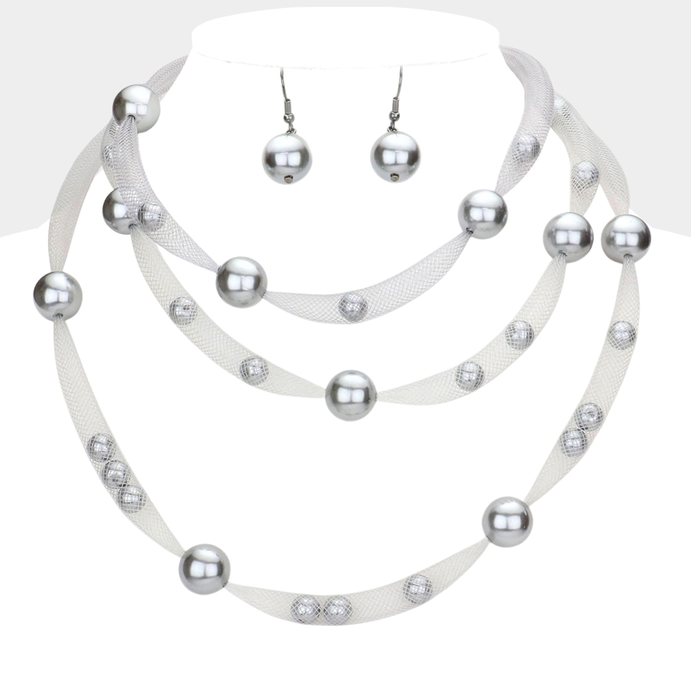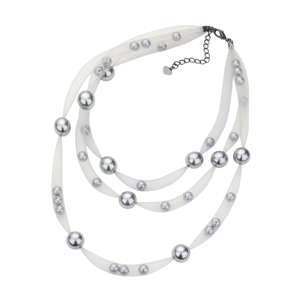 Triple Mesh Tube Pearl Collar Necklace