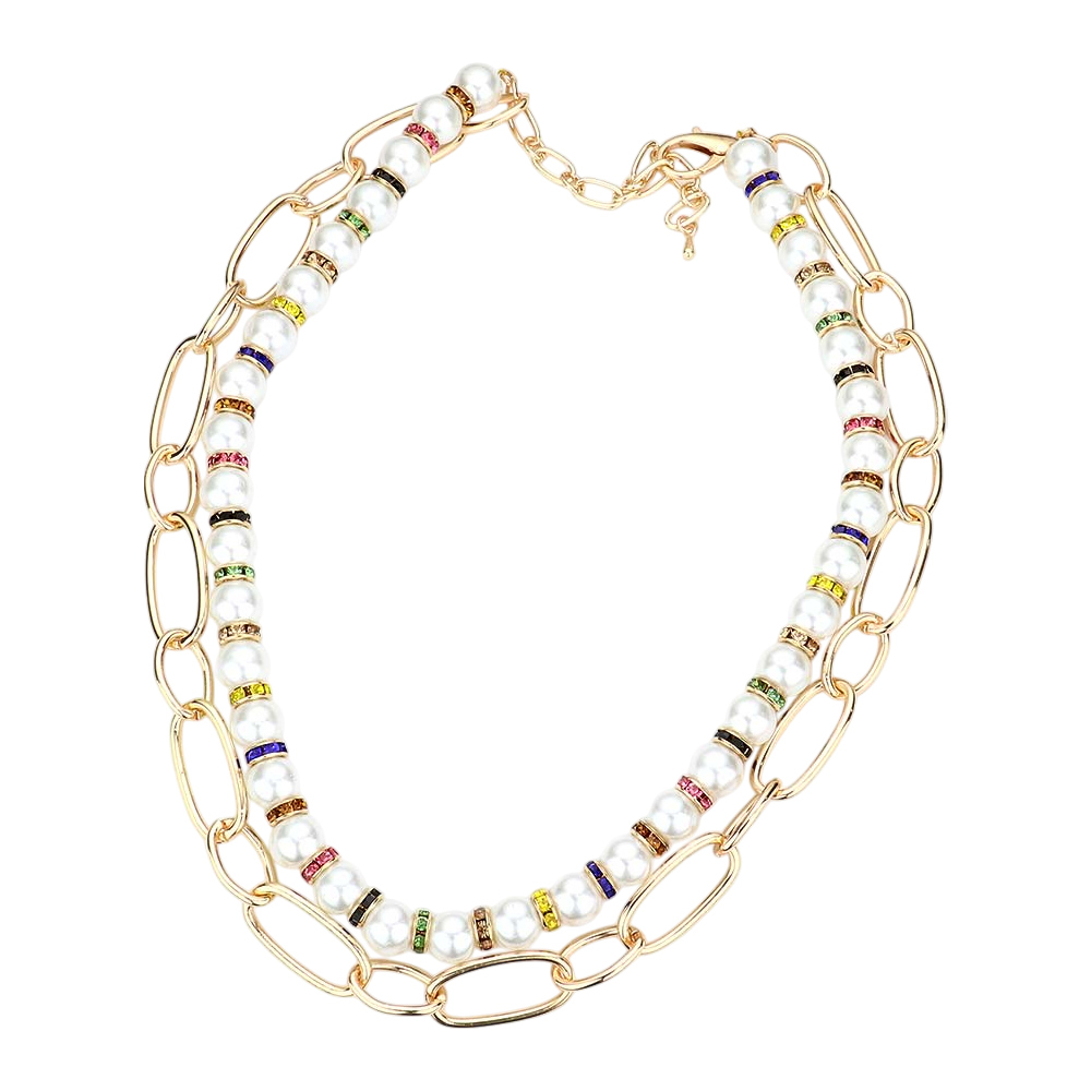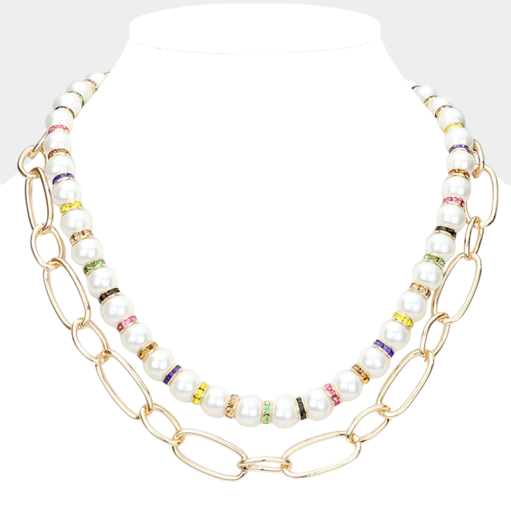 Rhinestone Paved Clover Pendant Pearl Necklace