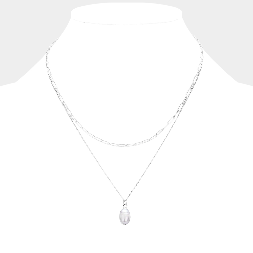 Metal Seashell Sand Dollar Pearl Starfish Charm Station Necklace