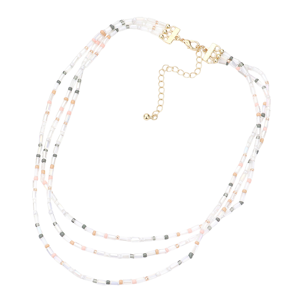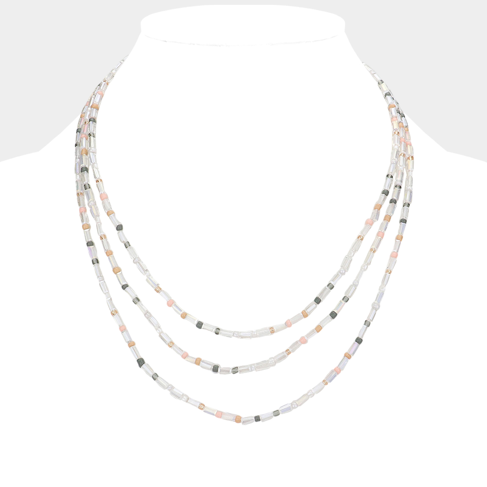 Rectangle Lucite Colorful Seed Beaded Triple Layered Bib Necklace