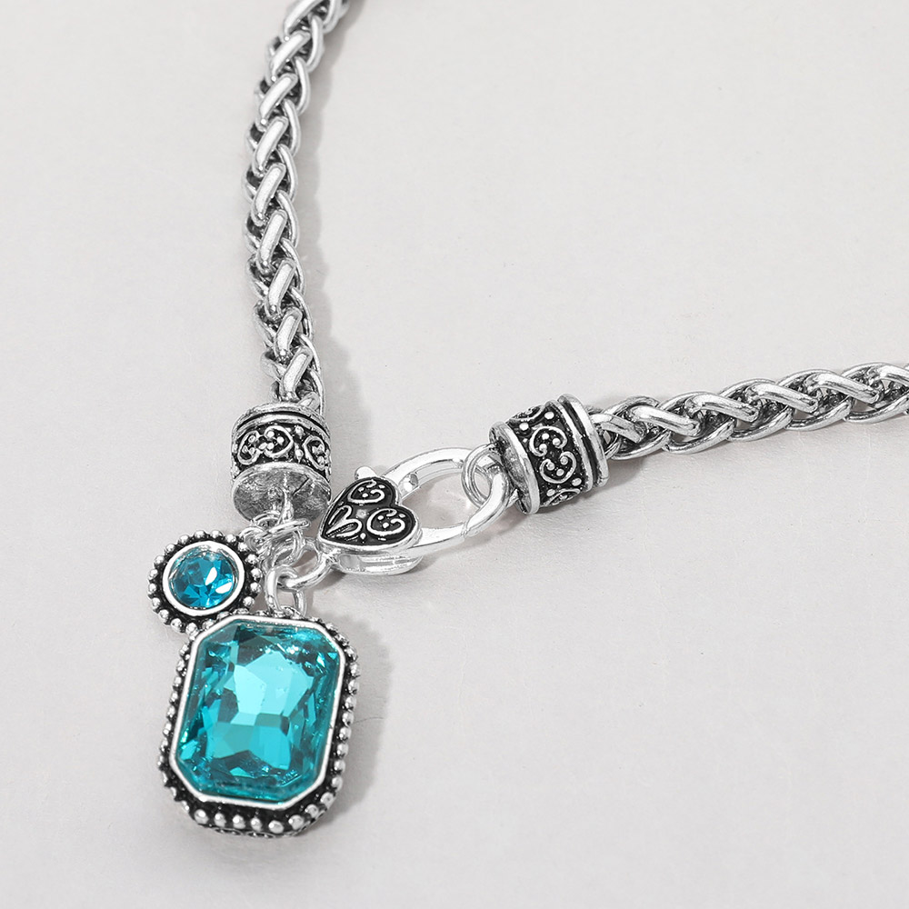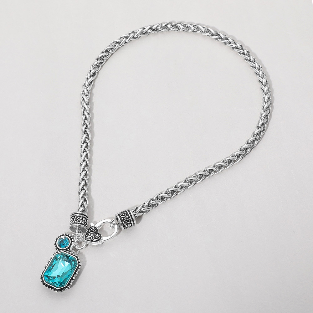 Rectangular Stone Pendant Antique Metal Necklace