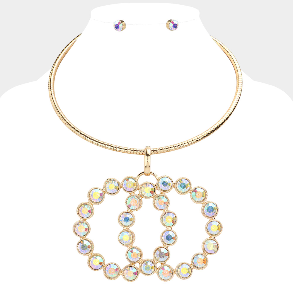 Rhinestone Paved 3-Row Necklace Jewelry Set