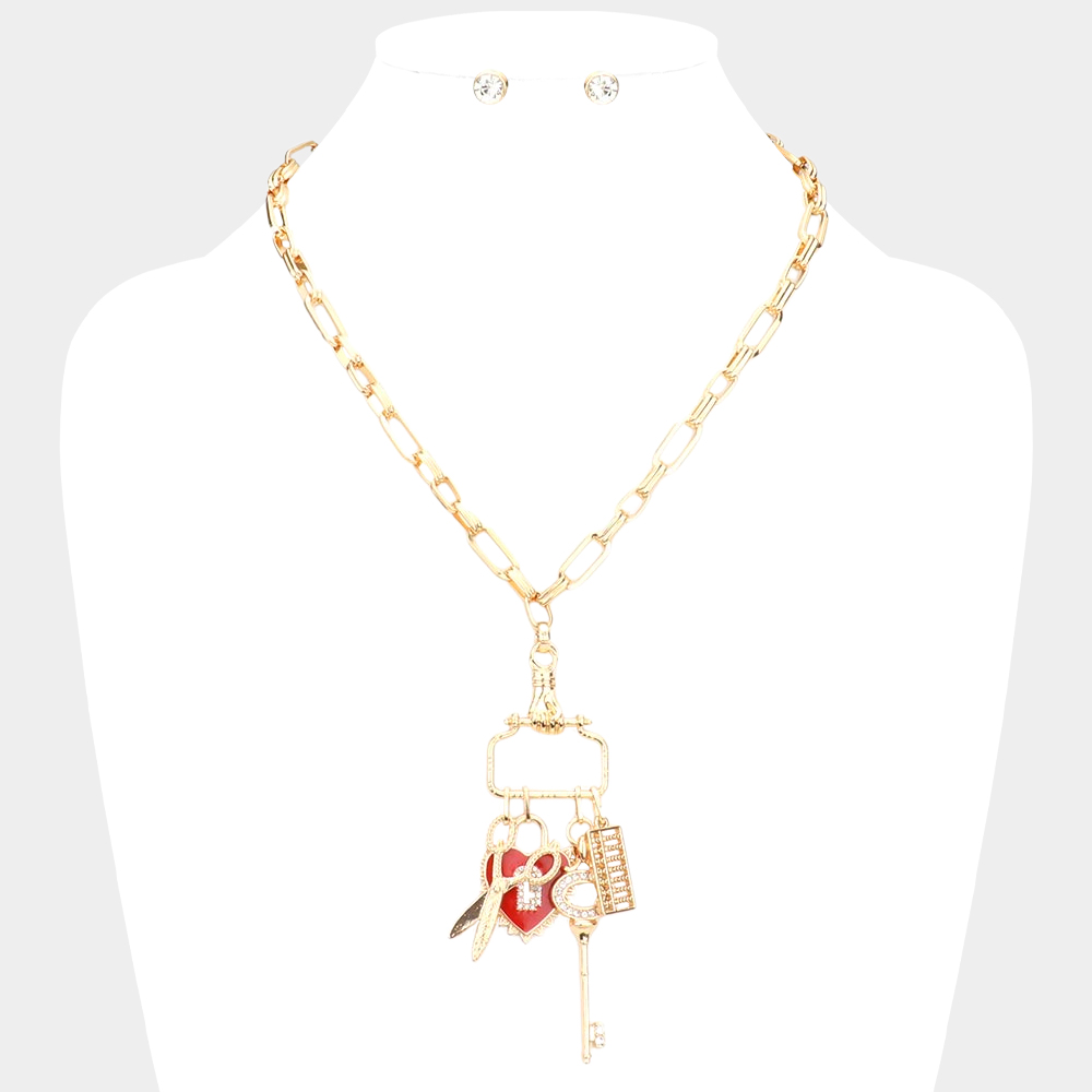 Natural Stone Cluster Metal Chain Fringe Necklace