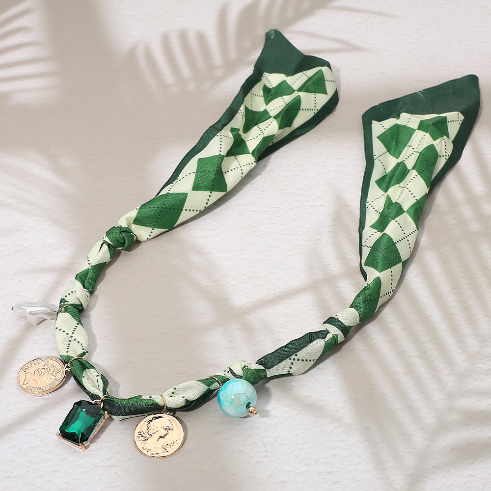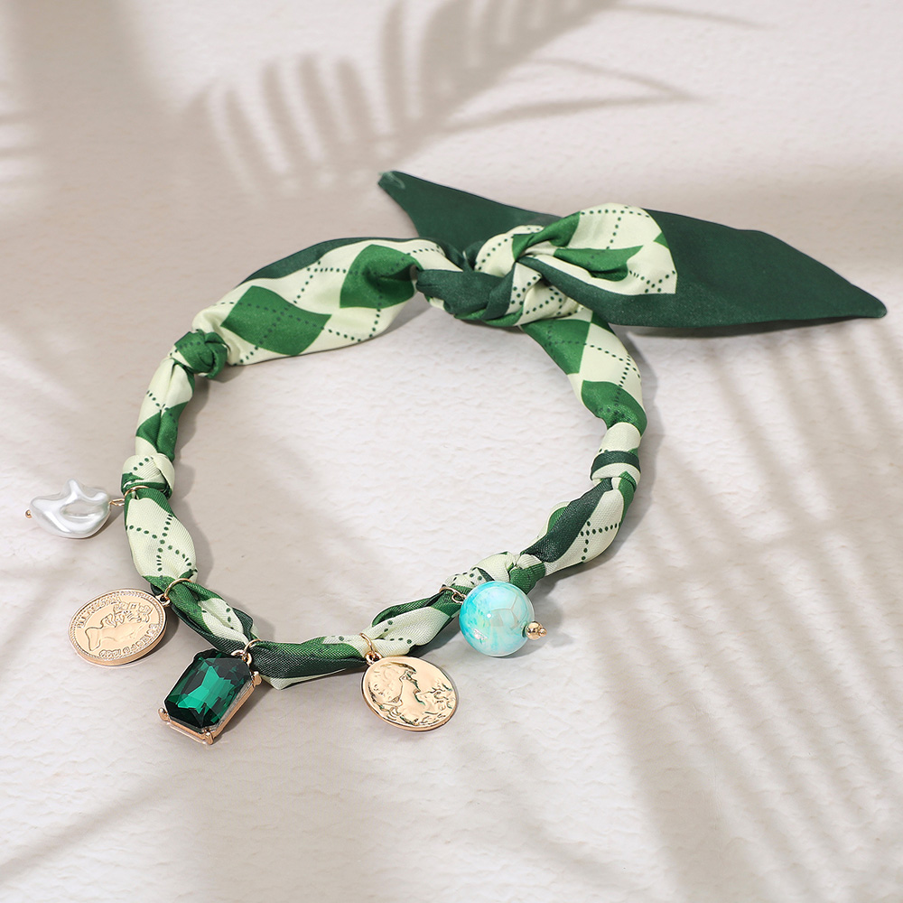 Details • Necklace Size : 28" L (Adjustable) • Decor Size : 1.1" L • Print may vary • Fashionable scarf necklace featuring a patterned fabric design adorned with assorted charms and decorative accents. A chic accessory that blends classic charm with contemporary style, perfect for enhancing both casual and dressy looks with a touch of creativity and elegance.