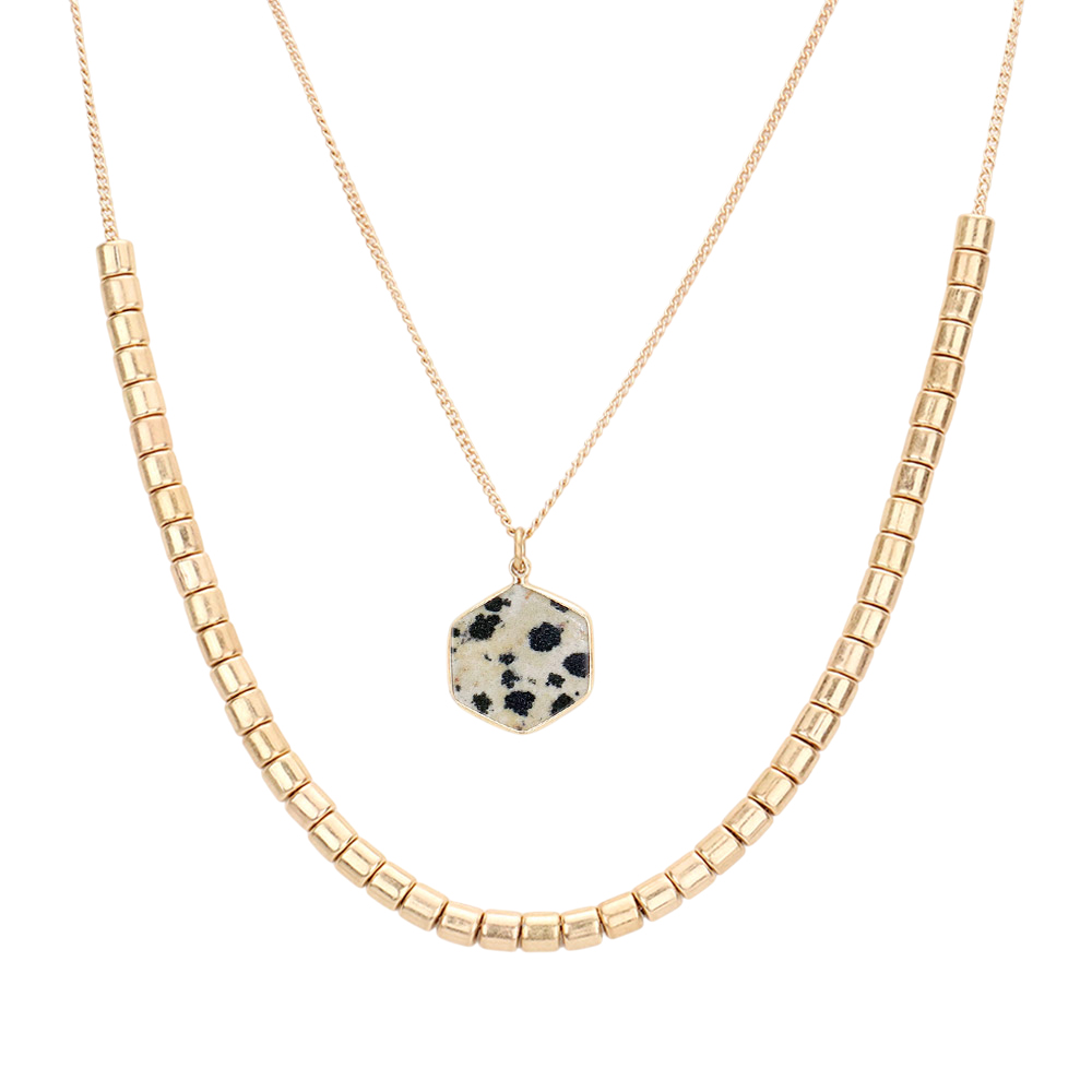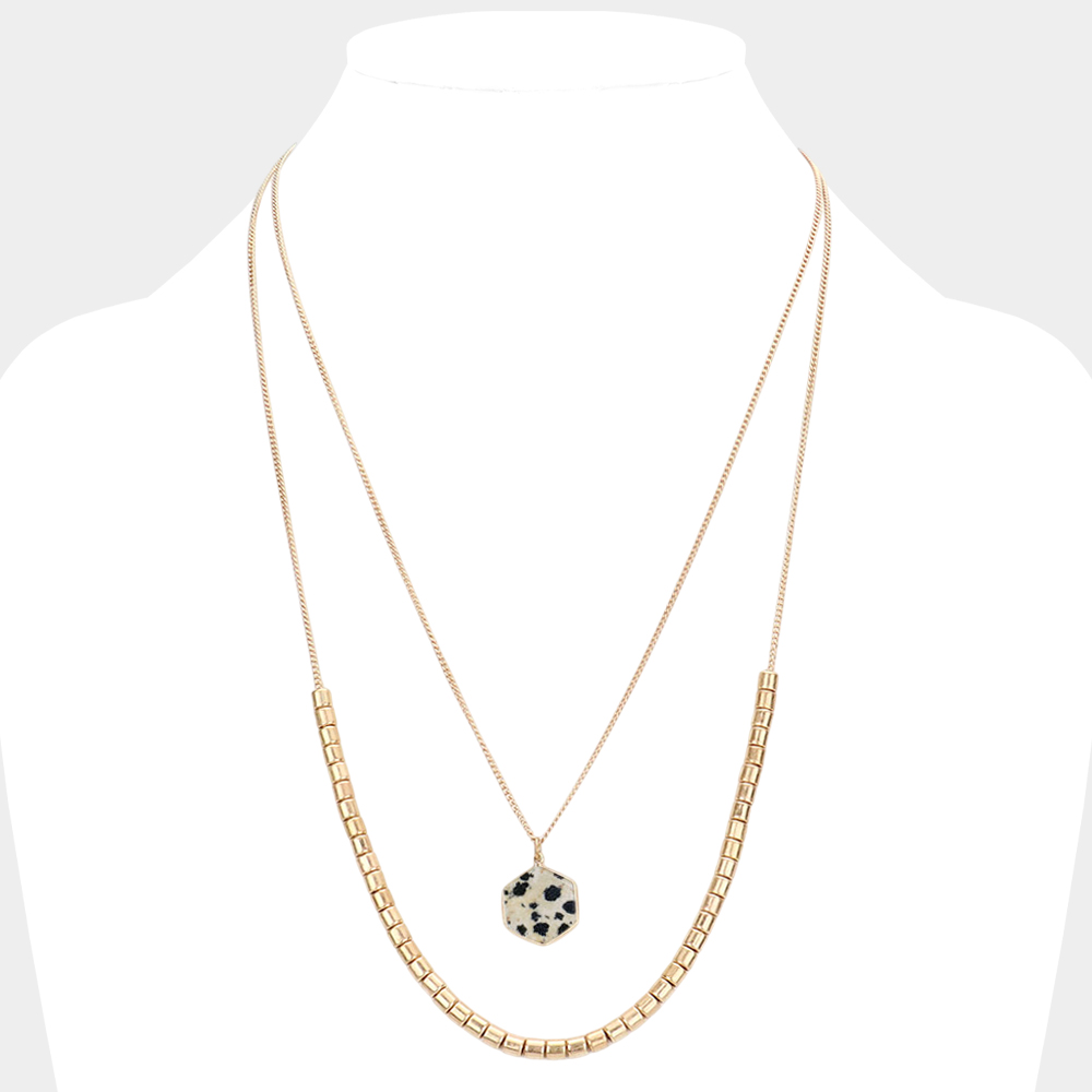 Semi Precious Hexagon Pendant Double Layered Necklace