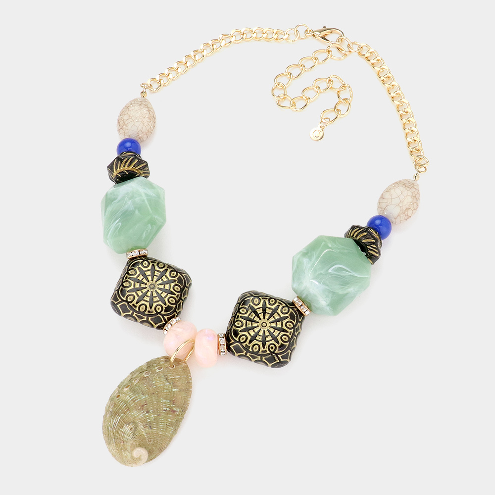 Shell Pendant Pointed Wood Natural Stone Beaded Bib Necklace