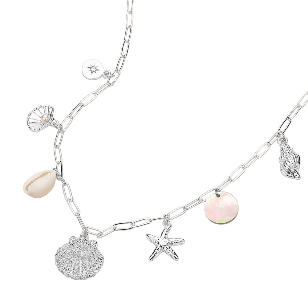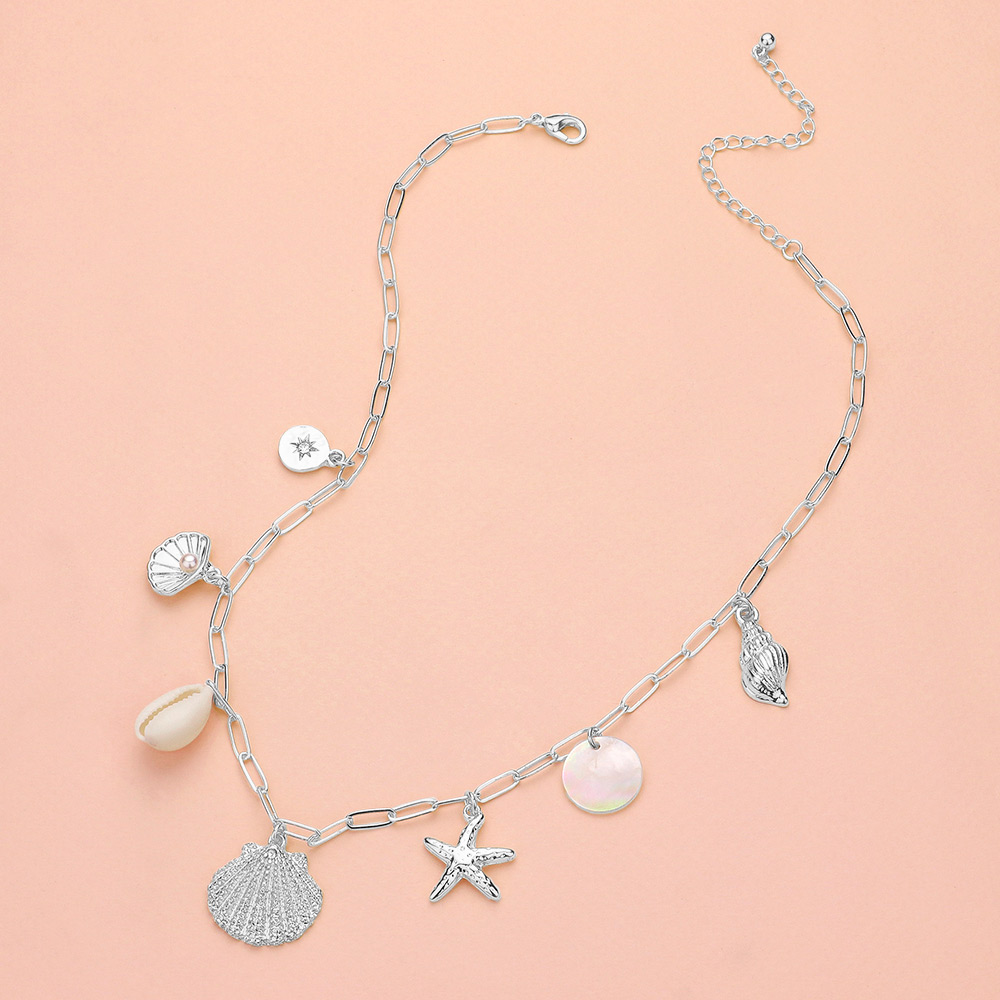 Shell Starfish Puka Shell Charm Station Paperclip Chain Necklace