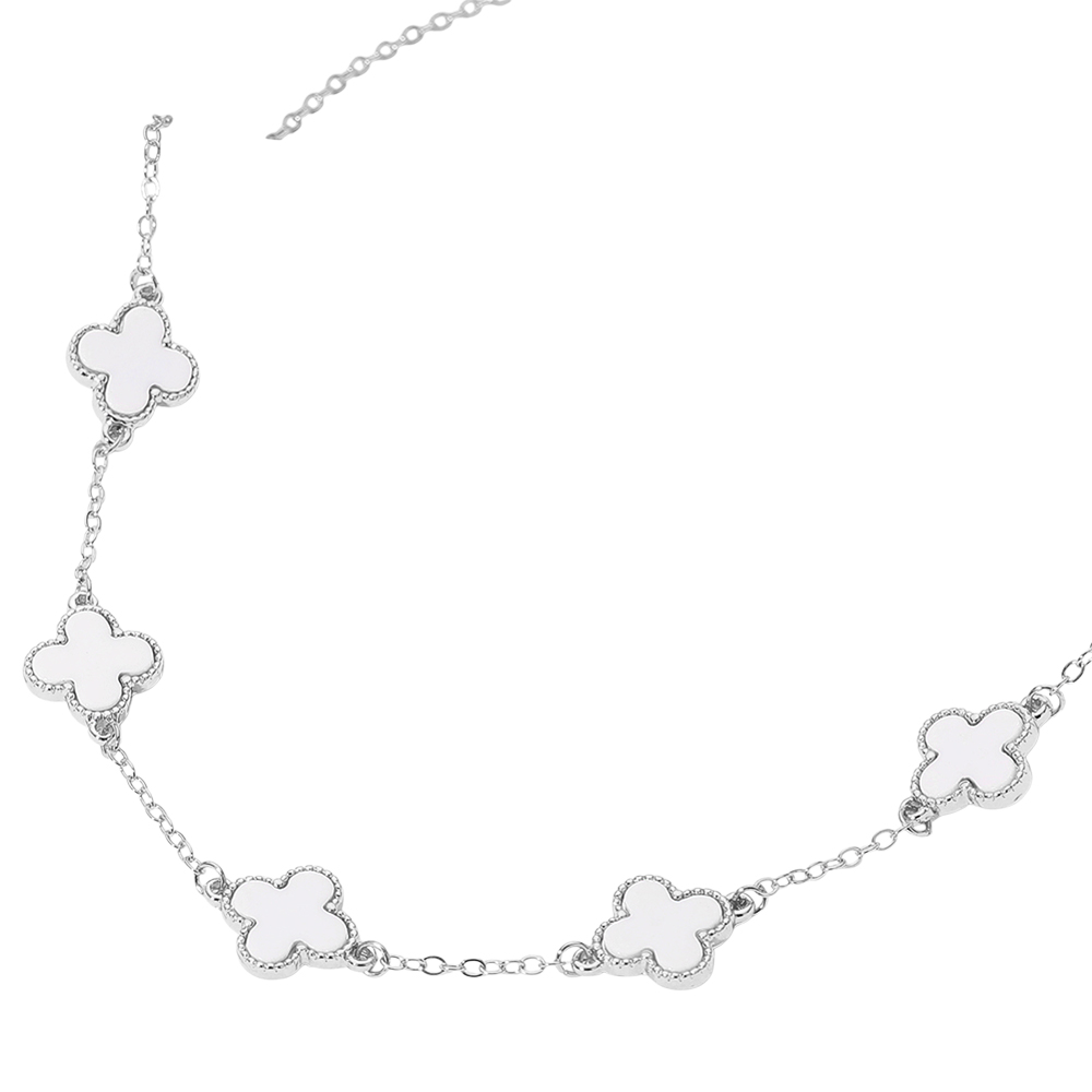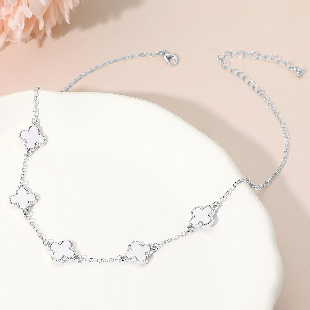 • This delicate four-leaf quatrefoil pendant necklace features five charming motifs linked by a fine adjustable chain. Designed to embody elegance and luck, it offers a timeless appeal that enhances both casual and formal looks, making it an essential piece for everyday sophistication.