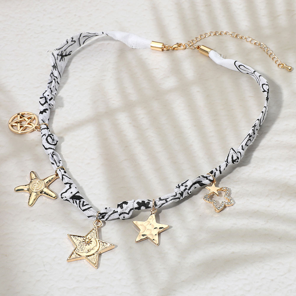 • Stylish bandana necklace featuring an array of star-shaped charms and a pentagram pendant. Adjustable fit makes it perfect for layering or wearing alone, adding a bold and celestial-inspired touch to casual, festival, or statement looks.