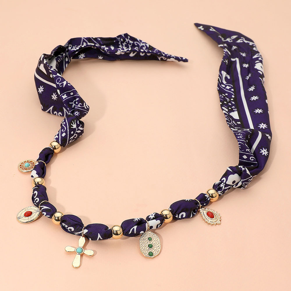 Stone Accent Boho Charm Station Fabric Scarf Adjustable Necklace
