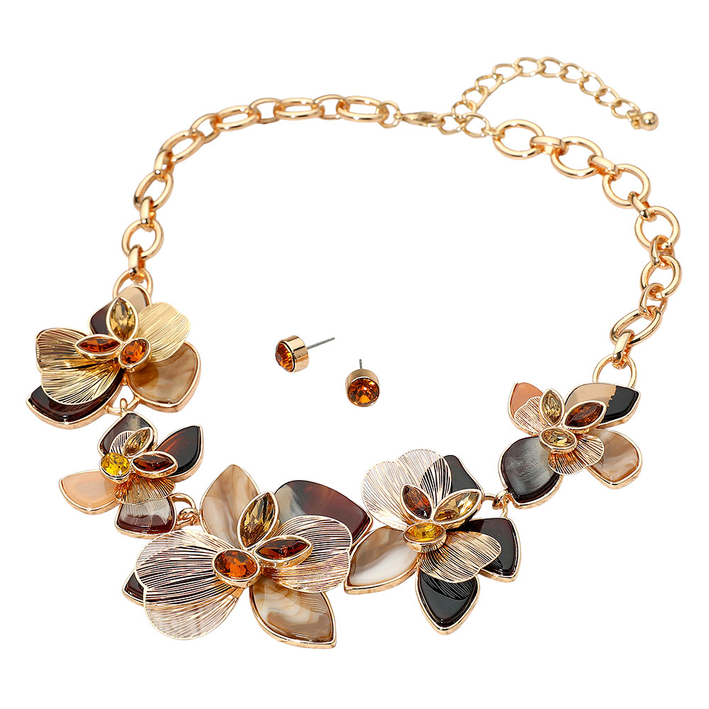 Stone Accent Resin Metal Cutout Floral Link Statement Necklace