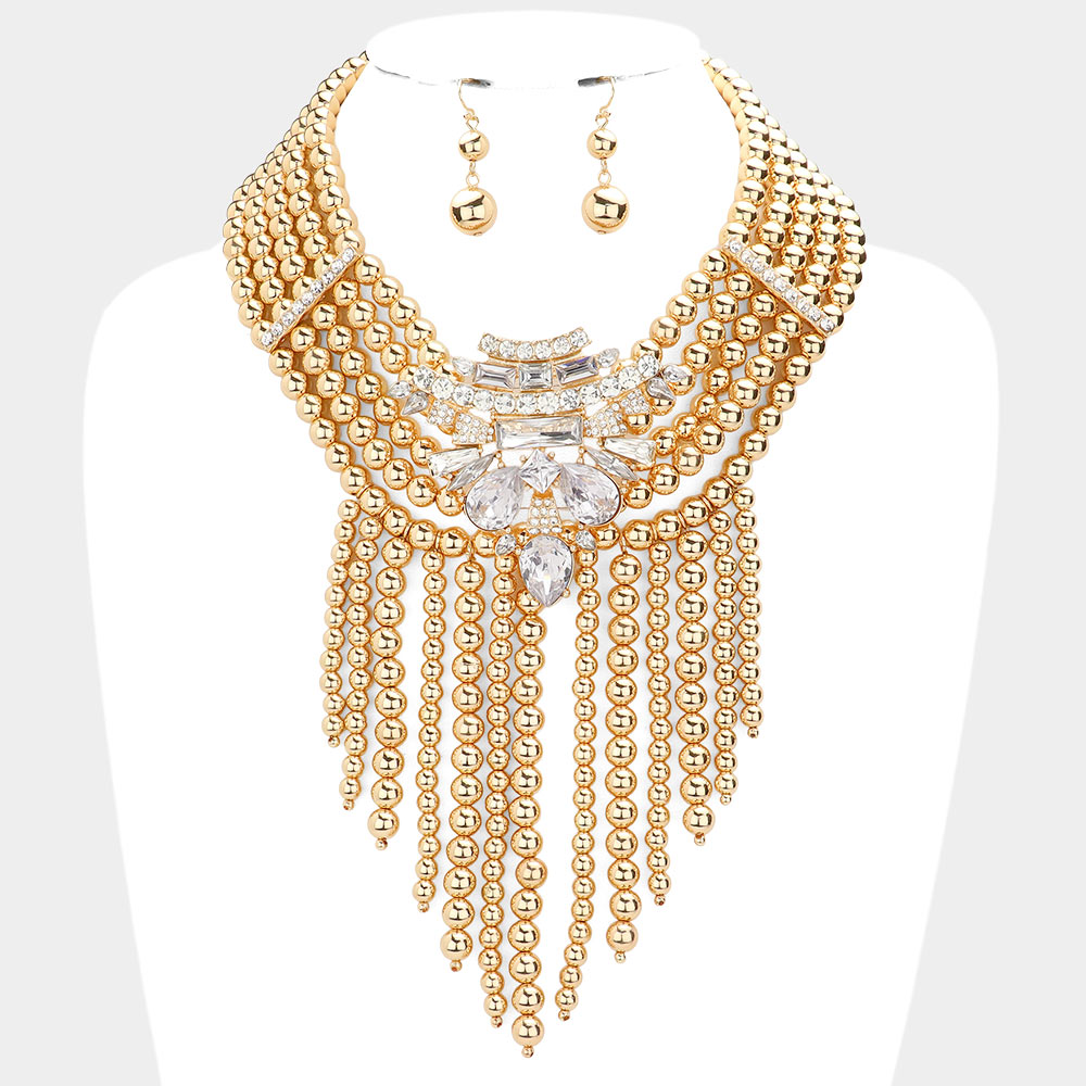 Rhinestone Paved Fringe Dropdown Evening Earrings