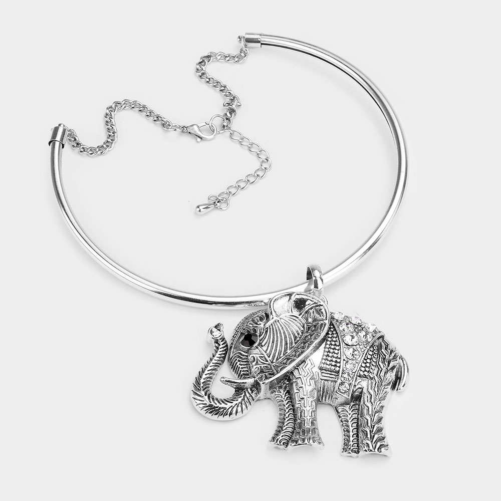 White Gold Dipped CZ Reindeer Pendant Necklace